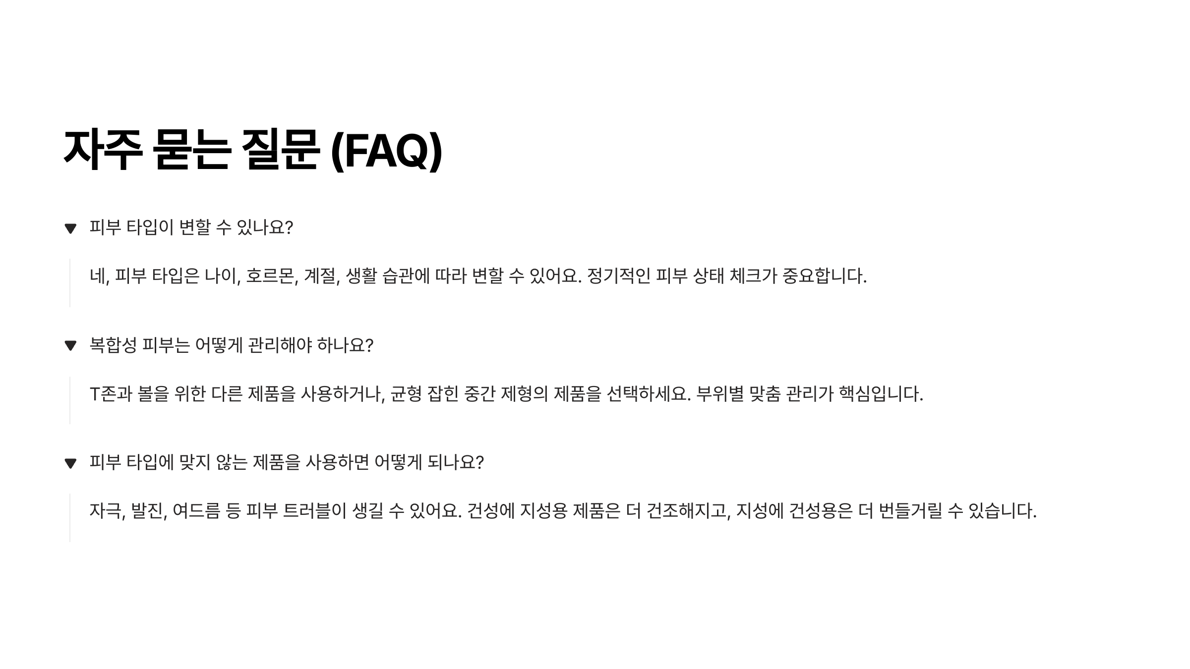 이제 마지막으로 피부 타입과 관련된 자주 묻는 질문(FAQ)을 정리해 볼게요! 👉