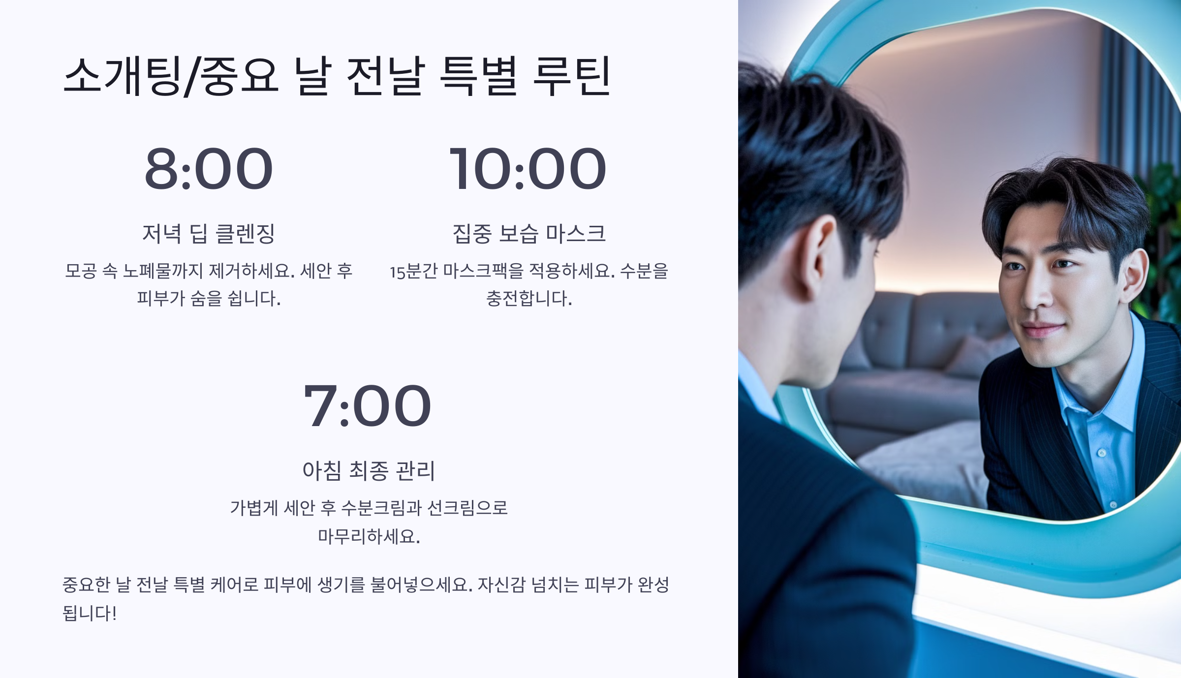 이 루틴 하나면 다음날 피부에서 빛나요. 말 그대로 “준비된 남자”의 완성! 🌟