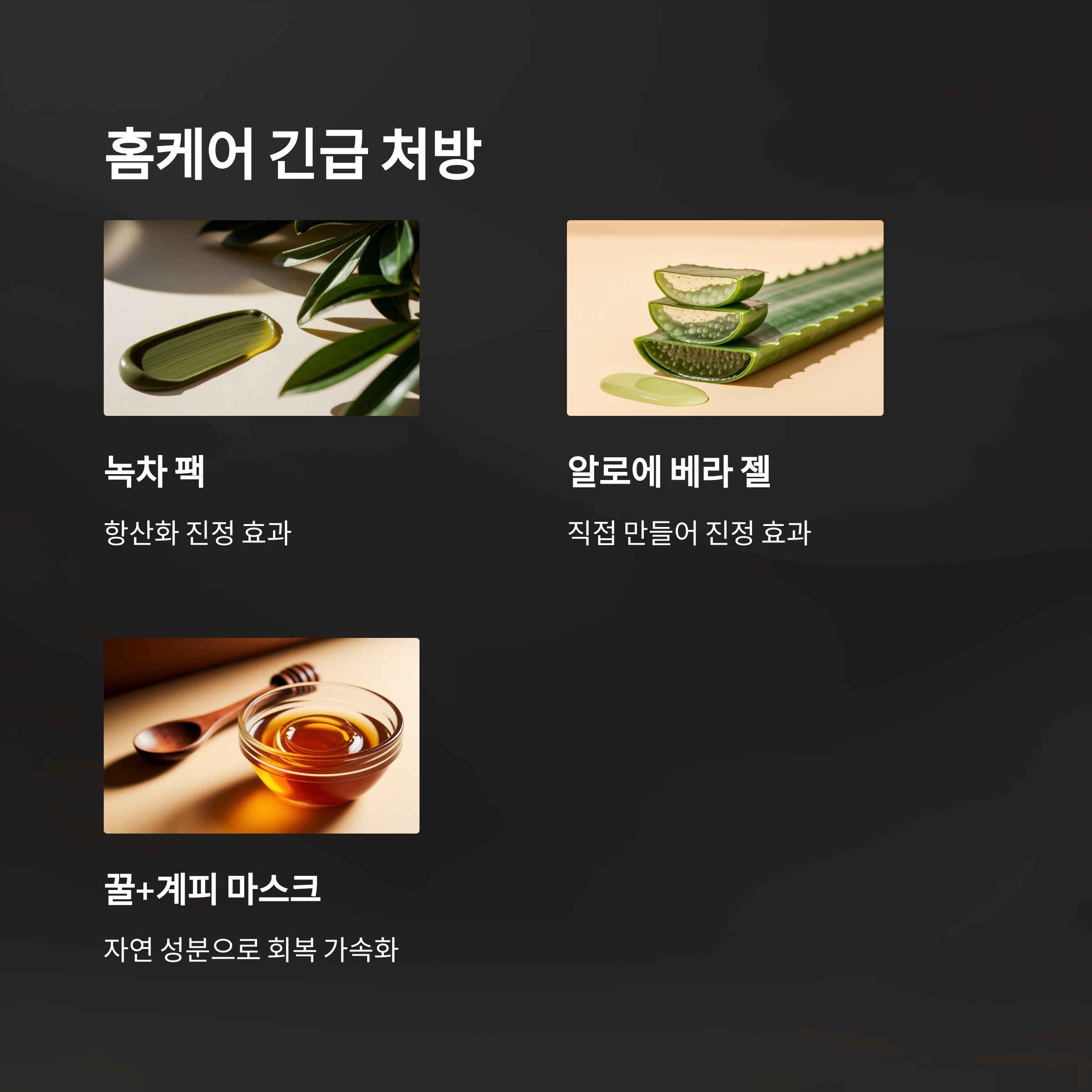 집에서도 쉽게 할 수 있는 응급 홈케어법 알려드릴게요! 트러블 났을 때, **잠깐만 10분** 투자해도 피부가 확 진정돼요. 🧖♀️