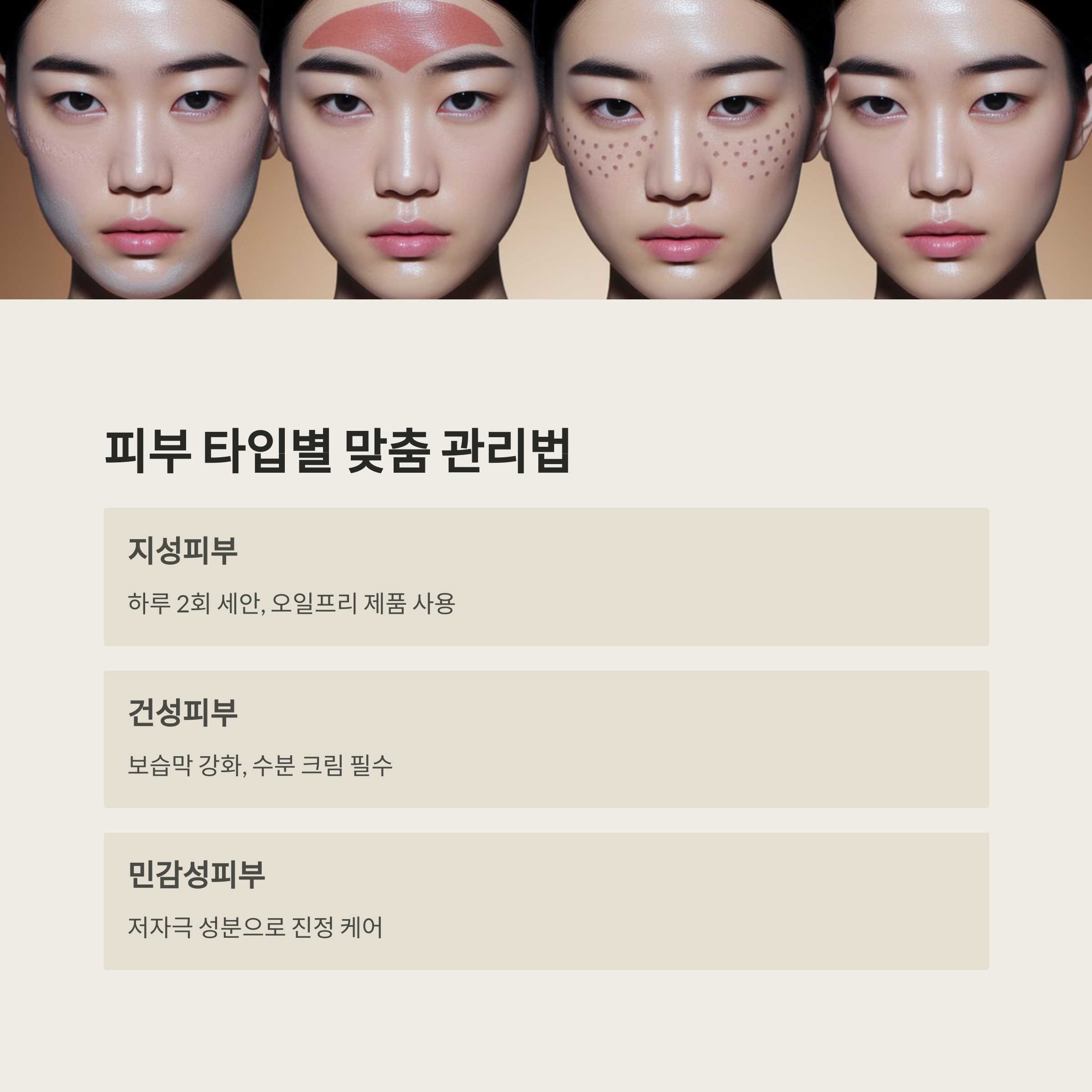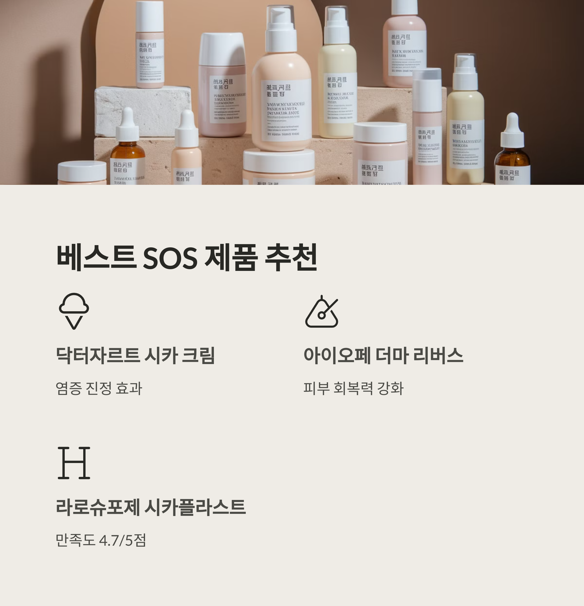 | 민감성 | 화끈거림, 붉음 | 무향 진정 제품 + 수분 보호막 |