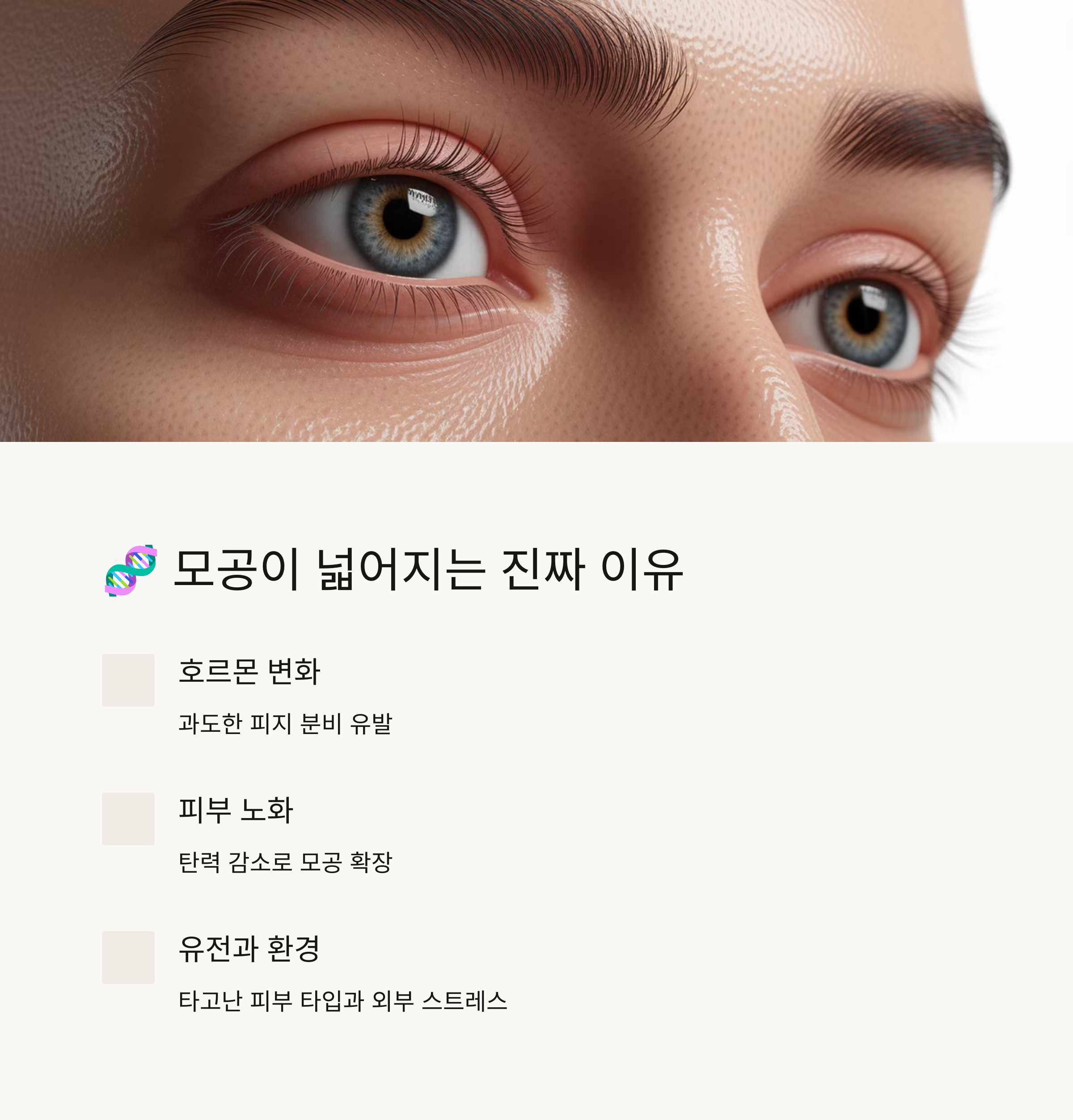 모공은 원래 누구에게나 있어요. 하지만 넓어지고, 도드라져 보이는 데는 이유가 있어요. 👀