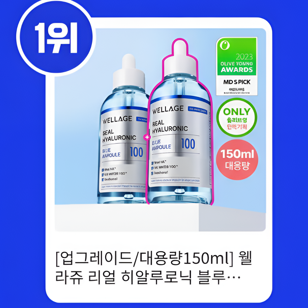 ↓↓↓[10월 올영픽/150ml/속건조앰플] 웰라쥬 리얼 히알루로닉 블루100 앰플 최저가 구매 바로가기↓↓↓