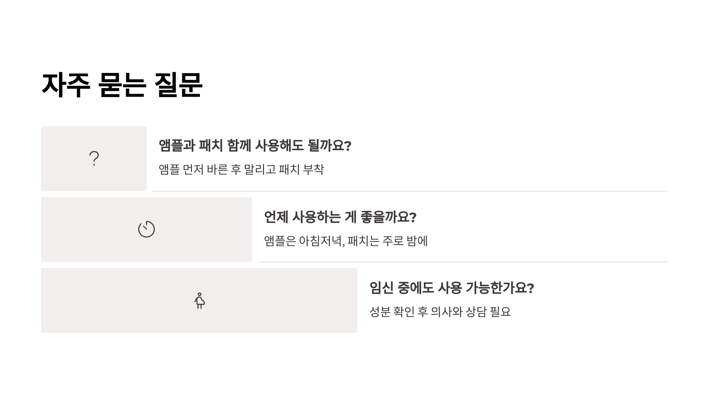 A1. 네! 앰플 → 크림 → 패치 순서로 사용하면 진정 + 보호 효과를 동시에 볼 수 있어요.