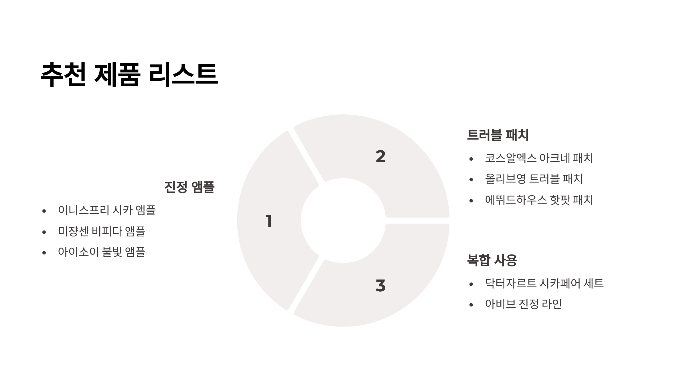 | 이미 짠 트러블 부위 | 앰플 → 패치 병행 |