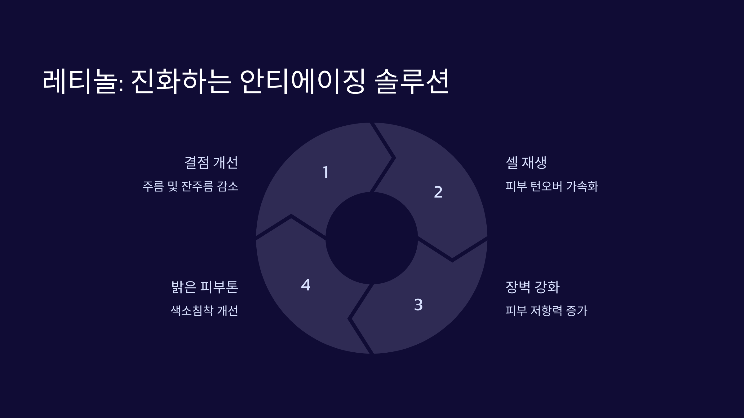 주름 개선, 탄력 증가, 모공 축소, 피부결 정리에 효과가 있어요. 단점은 **자극**이 있을 수 있으니 저농도부터 천천히 시작해야 해요. 🌙