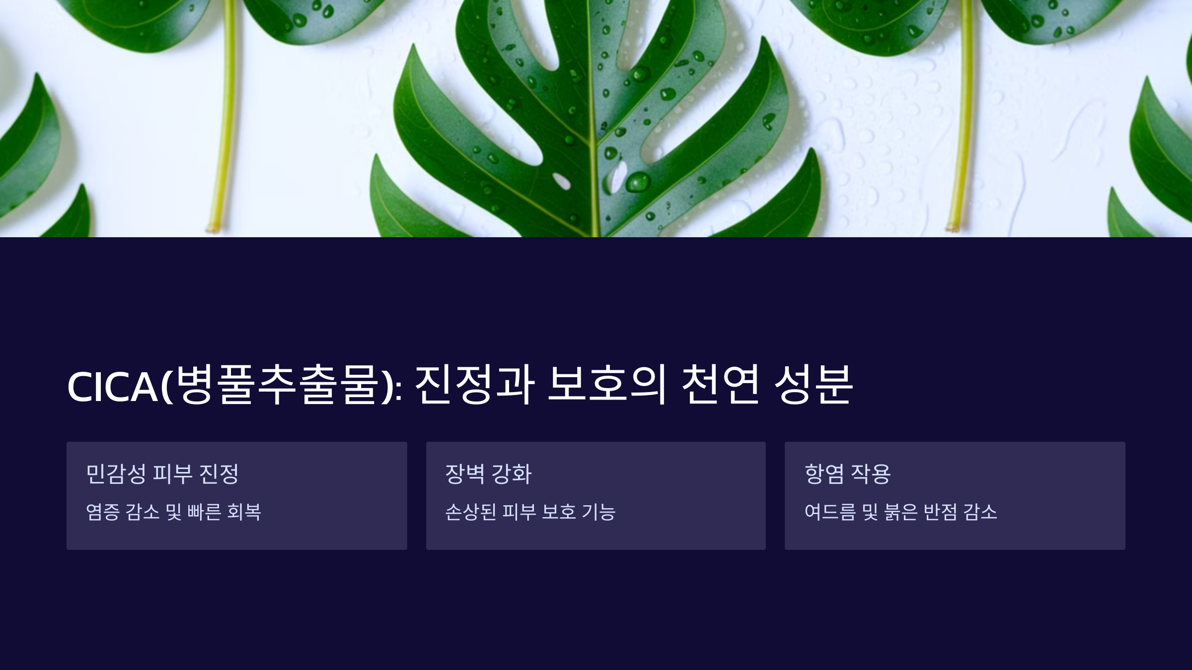2025년에도 ‘민감피부 필수템’으로 살아남은 성분! 바로 병풀이에요. CICA라고도 불리는 이 성분은 예민해진 피부를 빠르게 진정시켜 줘요. 🌱
